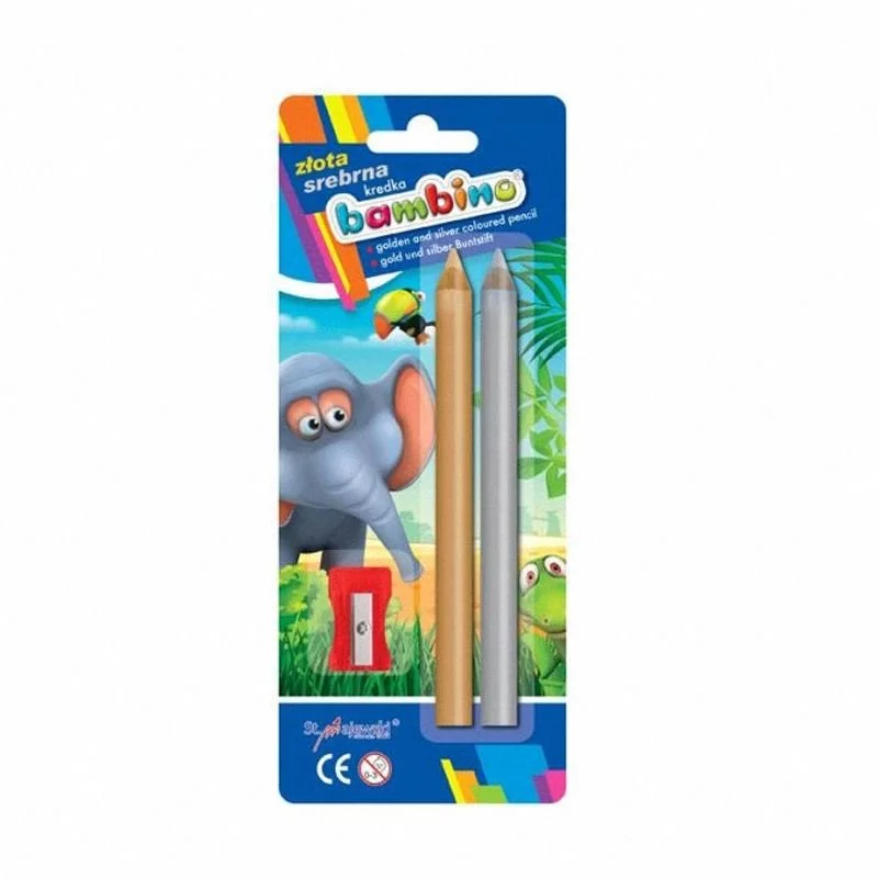 Kredki Bambino w Drewnie Złota i Srebrna + Temperówka /St.Majewski