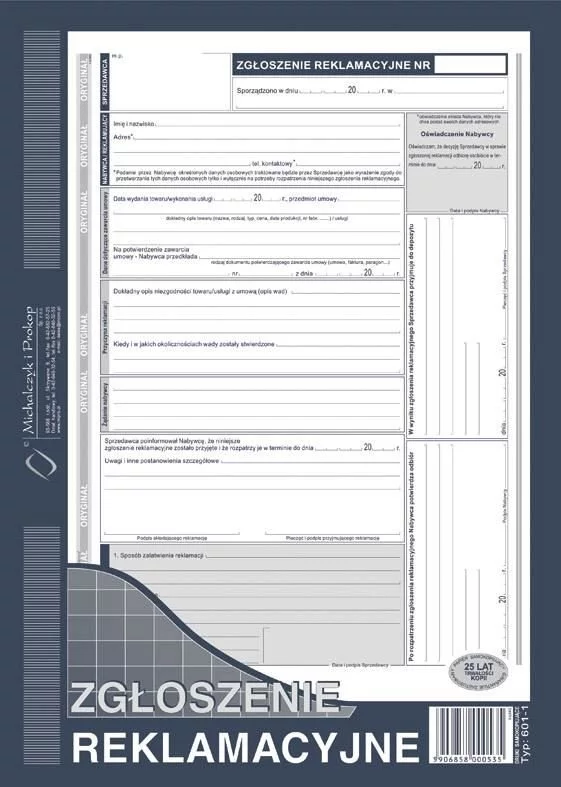 Zgłoszenie Reklamacyjne A4 Oryg.+2k 601-1 /MiP