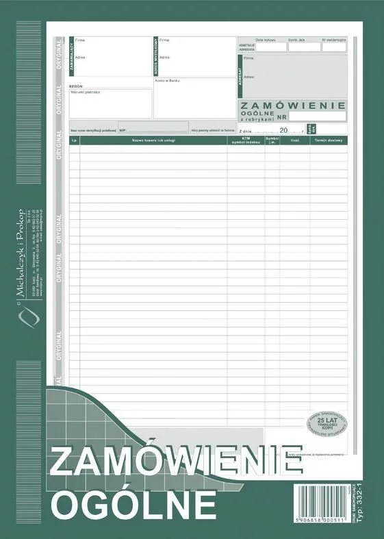 Zamówienie Ogólne A4 Oryg.+1k Pion 332-1 /MiP