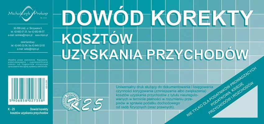 Dowód Korekty Kosztów Uzyskania Przychodów 1/3 A4 K25 /MiP