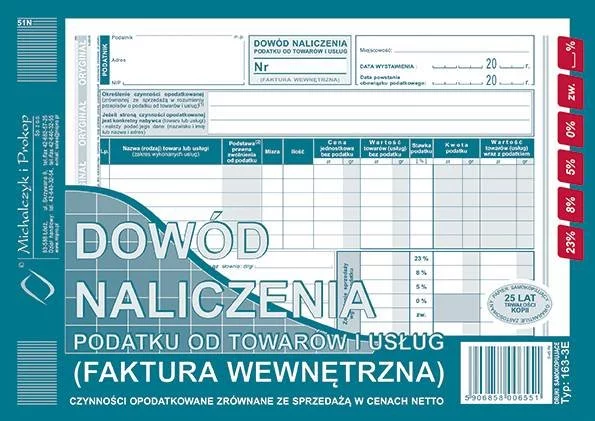 Dowód Naliczenia Podatku (Faktura Wewnętrzna) A5 Oryg.+1k 163-3E /MiP