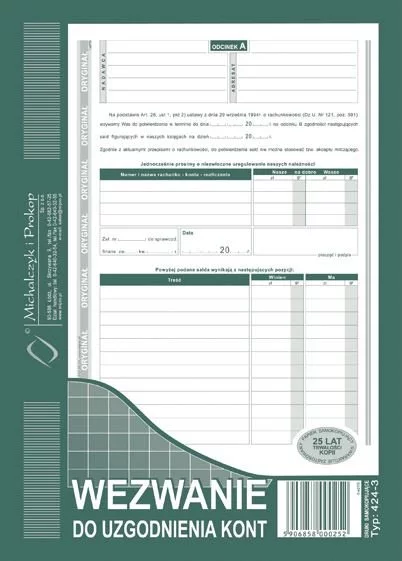 Wezwanie do Uzgodnienia Kont A5 Oryg.+1k Pion 424-3 /MiP
