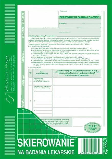 Skierowanie na Badania Lekarskie A5 Oryg.+1k 850-3 /MiP