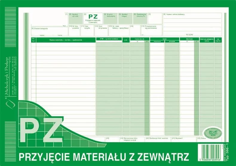 PZ Przyjęcie Materiału z Zew. A4 Wielok. Poziom 386-1 /MiP