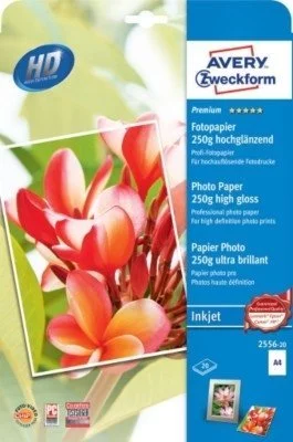 Papier Fotograficzny Premium 250g 20szt. Avery 210x297 Biały Wysokołyszczący No.2556-20