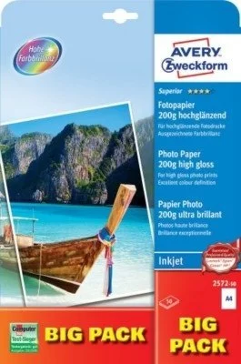 Papier Fotograficzny Powlekany 200g 50szt. Avery 210x297 Biały Wysokobłyszczący No.2572-50