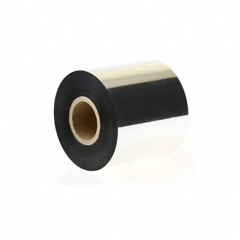 Czarna taśma termotransferowa woskowa do wydruku na etykietach papierowych między innymi w drukarkach etykiet ZEBRA.