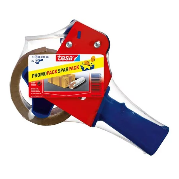 Dyspenser do taśm pakowych tesa® STANDARD to znakomite rozwiązanie na komfortowe oraz praktyczne pakowanie kartonowych pudeł czy też paczek. Wykonany jest wysokiej jakości materiałów – metalu oraz tworzywa sztucznego. Dyspenser posiada specjalne zabezpieczenia ostrza, które zapewnia skuteczną ochronę przed skaleczeniem. Dozownik jest bardzo wygodny w użyciu, można go obsługiwać jedną ręką. Przeznaczony jest do pracy z wszystkimi taśmami pakowymi (do 50mm). Niezastąpiony w biurze bądź magazynie.- Dyspenser + taśma 50 m x 48 mm
