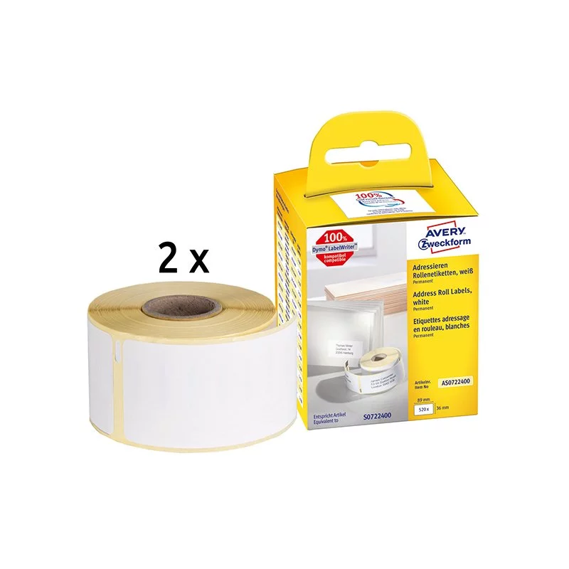 Adresowe Etykiety W Rolce Do Termodruku Avery 36x89 mm 2 Rolki/520 szt. AS0722400