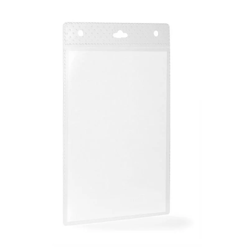 Tego typu identyfikator, zawiera otwarcie od góry, które gwarantuje szybką i wygodną wymianę zawartości. Dodatkowo, posiada dwa otwory, które utrzymują etykietę w odpowiednim położeniu. Ponadto, na tylnej stronie identyfikatora, umieszczono dodatkową kieszeń, w której można przechowywać wizytówki. Taka opcja, przyda się zwłaszcza podczas spotkań biznesowych i targów branżowych.