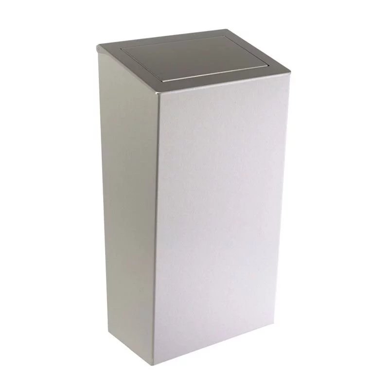 30 litrowy kosz na śmieci montowany na ścianie. Z praktyczną, zwiększajaca higieniczność korzystania z kosza uchylną pokrywą. Model wykonany z badzo wytrzymałej i łatwej w utrzymaniu w czystości stali nierdzewnej. Klasyczny, prosty design sprawia że ten ppjemnik na odpady idealnie wkomponuje się we wnętrze każdej toalety publicznej. Idealny do toalet publicznych o średnim i dużym natężeniu ruchu.