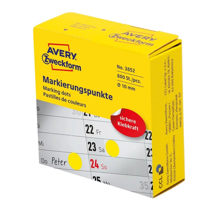 Kółka samoprzylepne służące do oznaczania. Nie trać czasu i wspomóż się etykietami do szybkiego i prostego oznaczania ręcznych projektów, kalendarzy, zdań prac w szkolę, a również sprawdzą się w pracy nauczyciela. Marka oferuje wachlarz nowych kolorów, takich jak: różowy, zielony, żółty i niebieski w rozmiarach śr. 10 oraz 19 mm. Nowe, wyraziste kolory, przykują uwagę, gdy w natłoku spraw trudno będzie wszystko spamiętać - ułatw sobie codzienne życie kółkami samoprzylepnymi marki Avery Zweckform. Etykiety są wykonane w bardzo dużej jakości a przylepiając je pewnie przylegają do powierzchni.