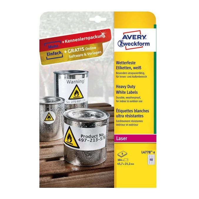 Każdy wie na czym polega chaos, wszystkiego jest wszędzie pełno, ciężko spamiętać co i gdzie dokładnie leży, ale pomożemy Ci w tym. Avery Zweckform serwuje wytrzymałe etykiety, które nie zniszczą się w trakcie wielokrotnego używania. Etykiety Heavy Duty są idealnie przystosowane do twoich potrzeb, gdyż są bardziej wytrzymałe niż tradycyjne etykiety papierowe.