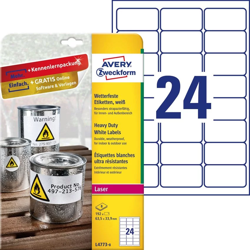 Każdy wie na czym polega chaos, wszystkiego jest wszędzie pełno, ciężko spamiętać co i gdzie dokładnie leży, ale pomożemy Ci w tym. Avery Zweckform serwuje wytrzymałe etykiety, które nie zniszczą się w trakcie wielokrotnego używania. Etykiety Heavy Duty są idealnie przystosowane do twoich potrzeb, gdyż są bardziej wytrzymałe niż tradycyjne etykiety papierowe.