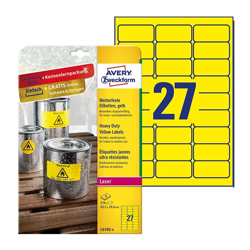 Wysoka jakość czyni etykiety wytrzymałymi i przystosowanymi do różnych warunków pogodowych. Oszczędź czas i pieniądze, marka Avery Zweckform wraz z etykietami oferuje darmowe szablony i oprogramowanie, dzięki którym możesz stać się niezależny od innych firm.
