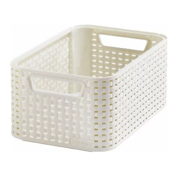 Mały, podręczny koszyk przyda się w każdym domu. Można w nim przechowywać klucze w przedpokoju, piloty od telewizora w pokoju dziennym, akcesoria do włosów lub drobne kosmetyki na toaletce w sypialni, a także: lekarstwa, akcesoria pasmanteryjne, przyprawy, słowem wszystkie drobne, podręczne rzeczy, które lubią się gubić w przepastnych szufladach i zakamarkach szafek. Kosz wykonany jest z wysokiej jakości tworzywa, przypominającego w swojej strukturze rattan. Wzmocnione uchwyty zaprojektowane są w taki sposób, że nie wystają poza obręb kosza, ale są jego integralną częścią. Dzięki temu zmieści ich się więcej na danej powierzchni.