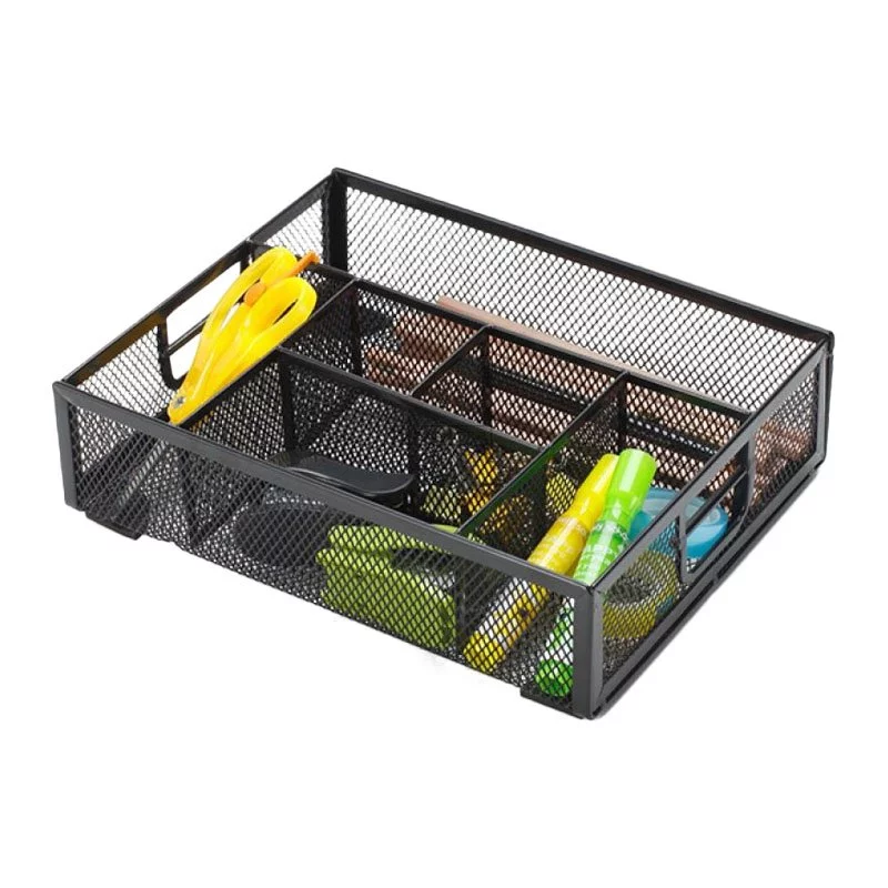 Ten organizer wykonano z trwałej siatki metalowej, którą dodatkowo pokryto lakierem. Idealnie nadaje się do przechowywania artukułów piśmeinnicznych, gumek, karteczek, korektorów, stempli itp. Z pewnością, sparwdzi się w kazdym biurze. Dzięki niemu, na blacie Twojego stolika zapanuje porządek. Wszystko będziesz mieć w zasięgu ręki i unikniesz gubienia się drobnych przedmiotów.