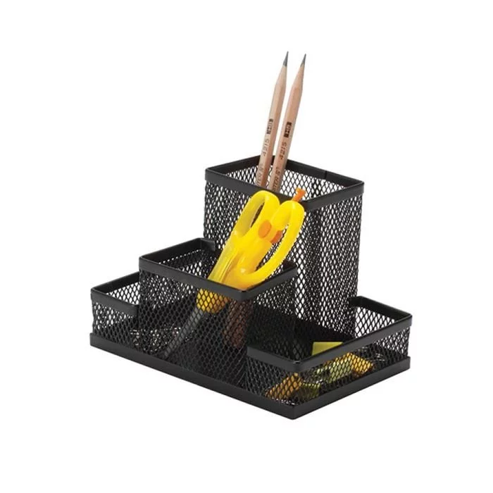Przybornik na biurko z 4 przegrodami.Kolor czarny.Świetnie nadaję się na biurko,szafkę,stolik.Dzięki niemu możemy mieć w jednym miejscu wszystkie potrzebne nam przyrządy kreślarskie na wyciągnięcie ręki.