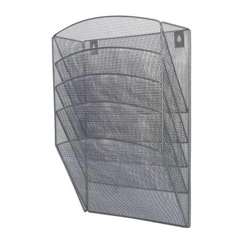 Zestaw 5 półek na dokumenty, korespondencję lub czasopisma. Wykonany z metalowej siateczki powlekanej lakierem. Idealnie nadaję się na biura. Na tylnej ściance dwa dedykowane otwory do mocowania na ścianie. W komplecie znajduję się zestaw mocujący do ściany.