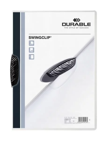 Skoroszyt Zaciskowy A4 PP Swingclip 30 Kartek Czarny /Durable 226001