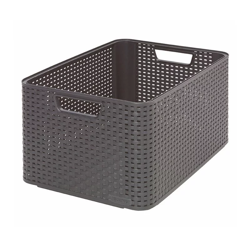 Koszyki, pojemniki i opakowania to stali bywalcy w naszych domach. W szafkach i w szufladach, na półkach, na regałach i na stole zawsze znajdzie się coś co wymaga uporządkowania. Prezentowany koszyk z pewnością sprawdzi się w każdej przestrzeni: w kuchni, w łazience, w pokoju dziennym i sypialni, ale także w biurze lub np. w zakładzie krawieckim lub fryzjerskim. Materiał, z którego opakowanie jest wykonane przypomina w swojej strukturze rattan. Wzmocnione uchwyty zaprojektowane są w taki sposób, że nie wystają poza obręb kosza, ale są jego integralną częścią. Dzięki temu zmieści ich się więcej na danej powierzchni.