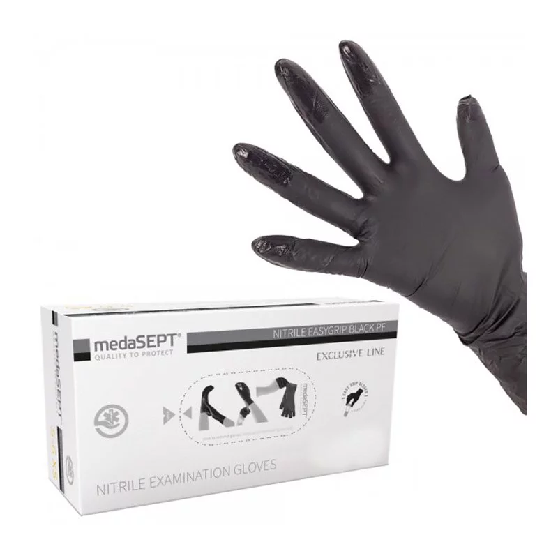 Rękawice Nitrylowe Bezpudrowe Czarne L 100szt. / Medasept