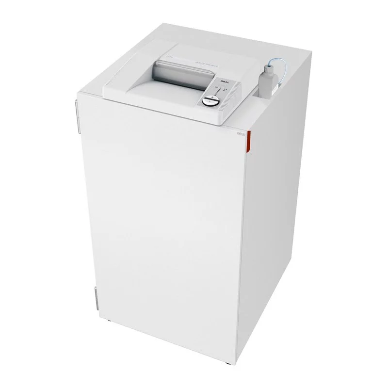 IDEAL 2604 JUMBO z automatyczną smarownicą to bardzo wydajna niszczarka dokumentów biurowych z przełącznikiem EASY-SWITCH zapewniającym intuicyjną obsługę. Specjalną cechą IDEAL 2604 JUMBO jest wyjątkowo duża objętość kolekcji. „Niebieski pojemnik” o pojemności około 240 litrów służy jako pojemnik na śmieci . Automatyczny wtrysk oleju bezpośrednio na wałki noża zapewnia niezmiennie wysoką wydajność cięcia. IDEAL 2604 niszczy twoje dane podczas cięcia cząstek 4x40 mm i tym samym spełnia poziom bezpieczeństwa P-4 (DIN 66399). Mocny silnik o mocy 640 W nadaje się do ciągłej pracy. Solidna i zamknięta skrzynia biegów z podwójnym układem napędowym IDEAL 2604 umożliwia cichą pracę. Wałki nożowe wysokiej jakości, odporne na spinacze do papieru, wykonane z hartowanej stali specjalnej z gwarancją LIFETIME
