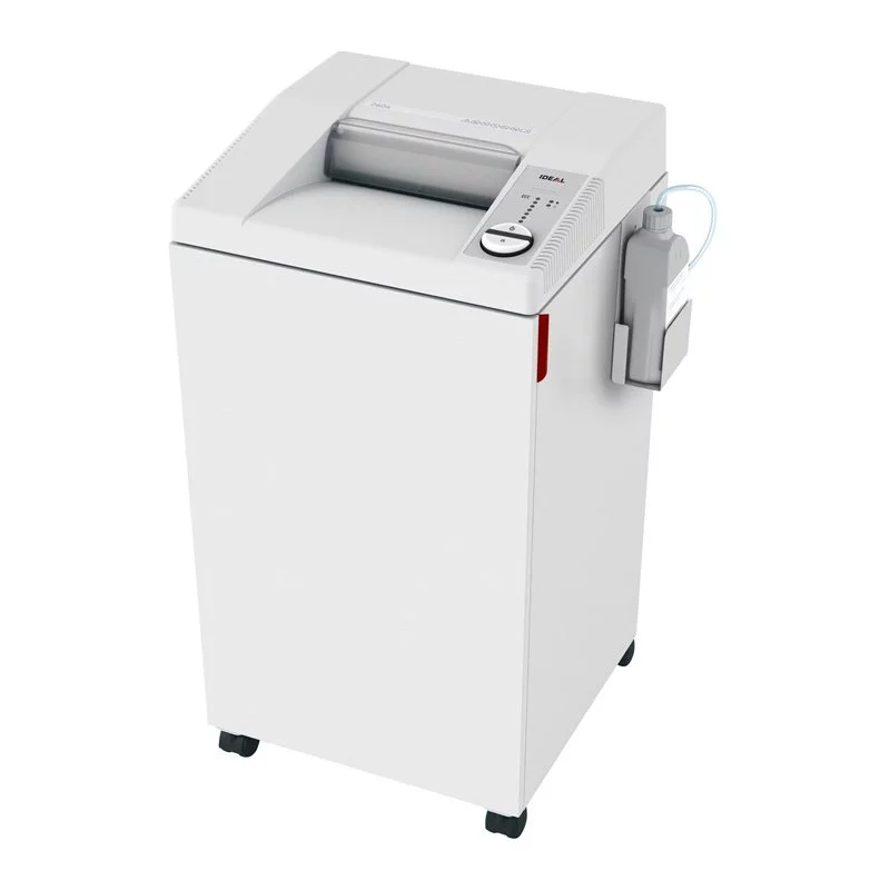 IDEAL 2604 to bardzo wydajna niszczarka dokumentów biurowych z automatyczną smarownicą i przełącznikiem EASY-SWITCH zapewniającym intuicyjną obsługę. Wysokiej jakości, mobilna drewniana podstawa z pojemnikiem na ścinki o pojemności 100 litrów i silnym silnikiem o mocy 640 W zapewniającym ciągłą pracę. Solidna i zamknięta skrzynia biegów z podwójnym układem napędowym IDEAL 2604 umożliwia cichą pracę. Wałki nożowe wysokiej jakości, odporne na spinacze do papieru, wykonane z hartowanej stali specjalnej z gwarancją LIFETIME.