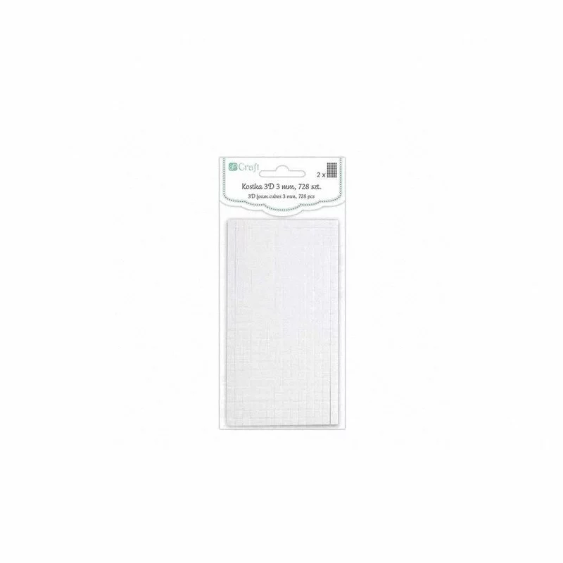 Przestrzenna taśma dwustronnie klejąca w formie kosteczek. Ułatwia mocowanie niewielkich elementów dekoracyjnych zarówno papierowych jak i z innych tworzyw, np. kryształków, kwiatków itp. Niezbędna do tworzenia przestrzennego efektu w kartkach okolicznościowcych oraz przy innych projektach.