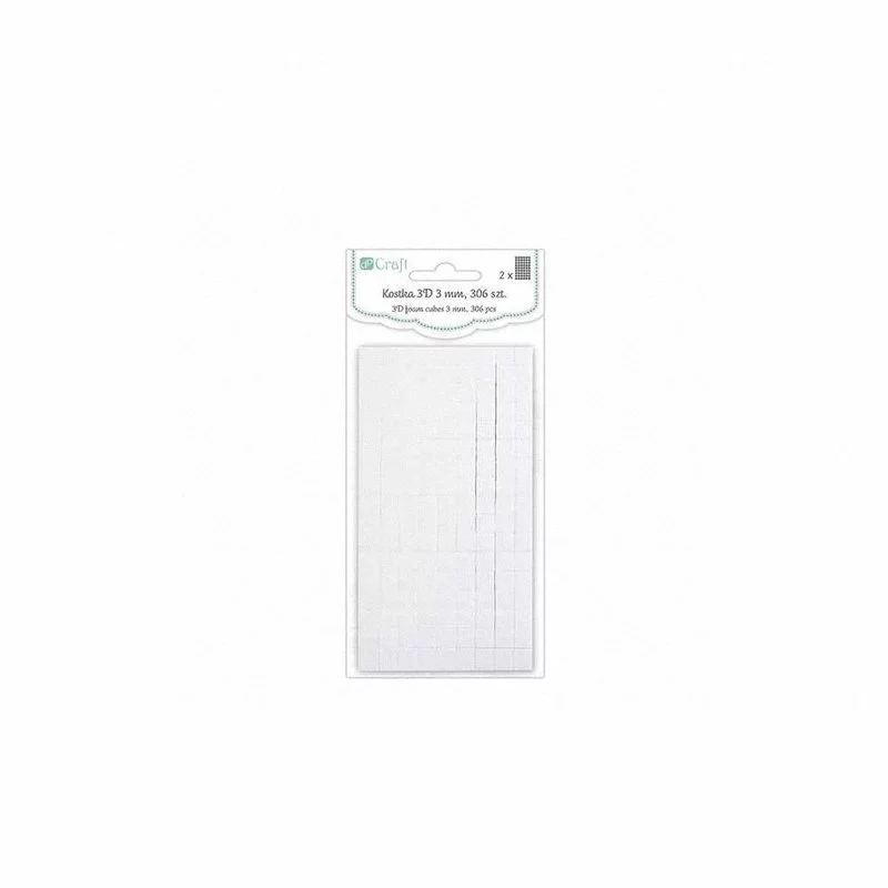 Przestrzenna taśma dwustronnie klejąca w formie kosteczek. Ułatwia mocowanie niewielkich elementów dekoracyjnych zarówno papierowych jak i z innych tworzyw, np. kryształków, kwiatków itp. Niezbędna do tworzenia przestrzennego efektu w kartkach okolicznościowcych oraz przy innych projektach.