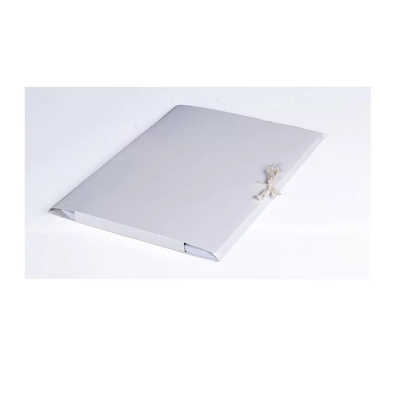 Teczka wykonana z kartonu celulozowego. Zaopatrzona w tasiemki bawełniane dostosowane długością do szerokości grzbietu.
