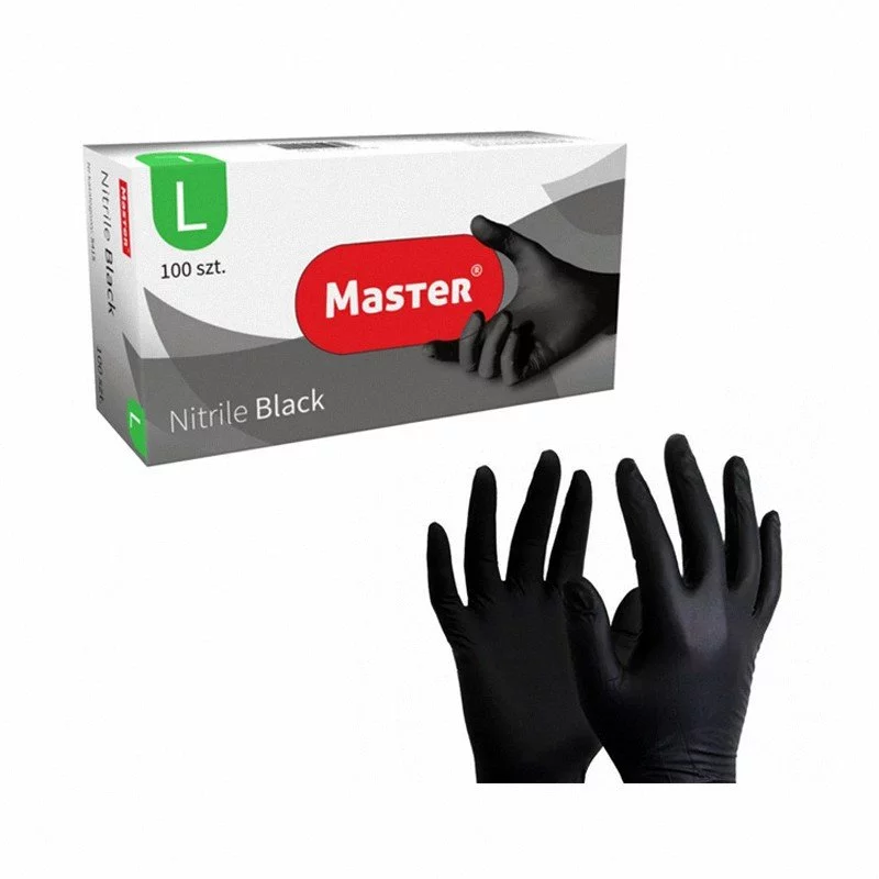 Rękawice Nitrylowe Bezpudrowe Czarne L 100szt. / Master
