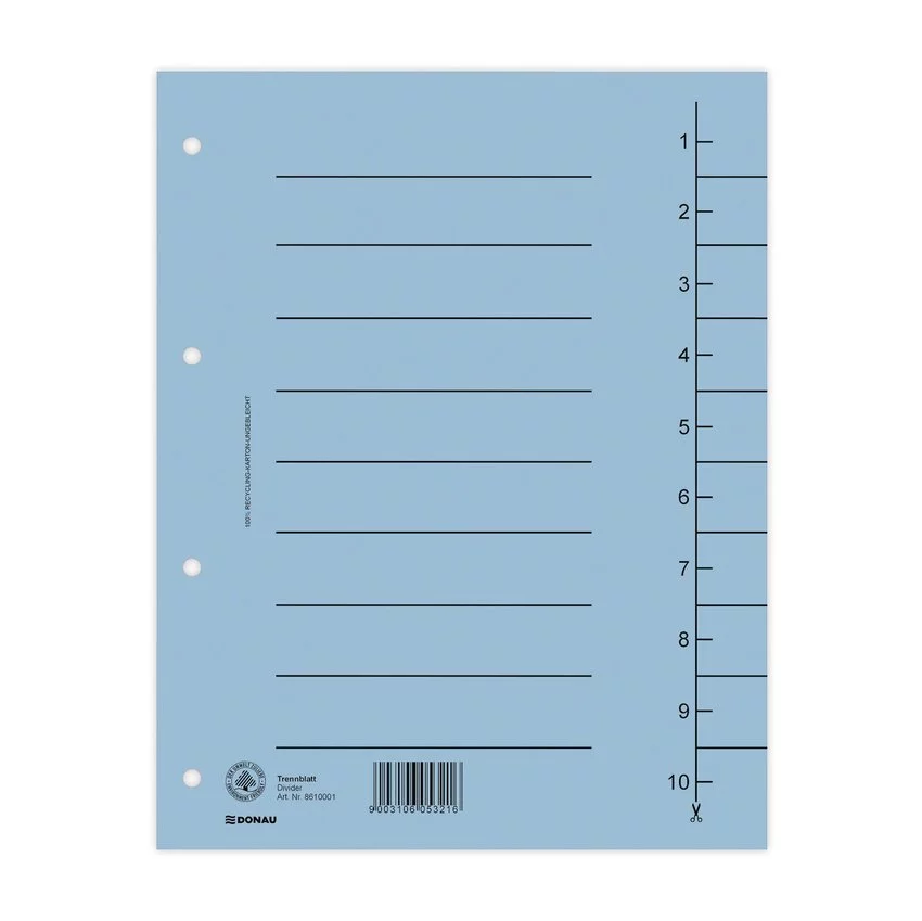 Przekładka Donau Karton A4 235X300mm 1-10 1 Karta Niebieska