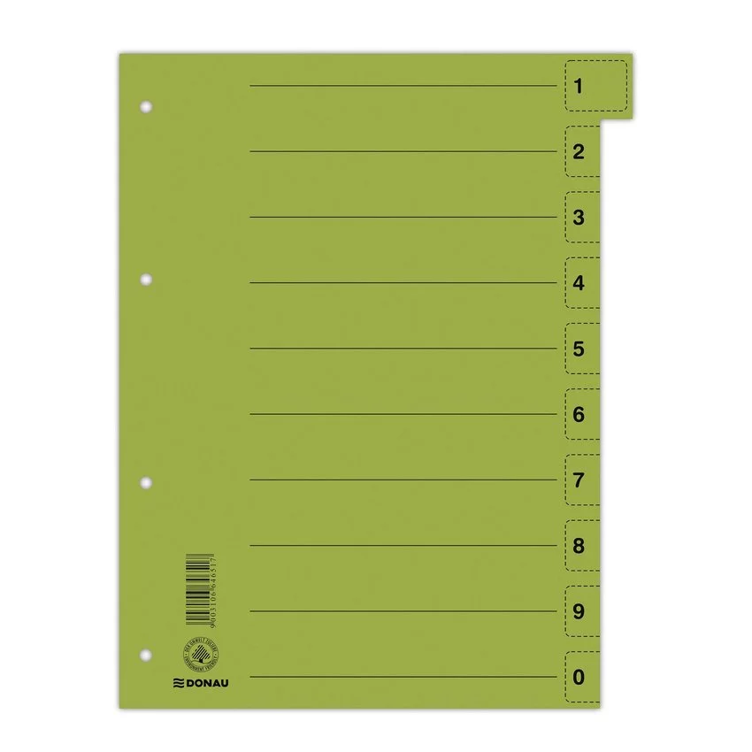 Przekładka Donau Karton A4 235X300mm 0-9 1 Karta Z Perforacją Zielona
