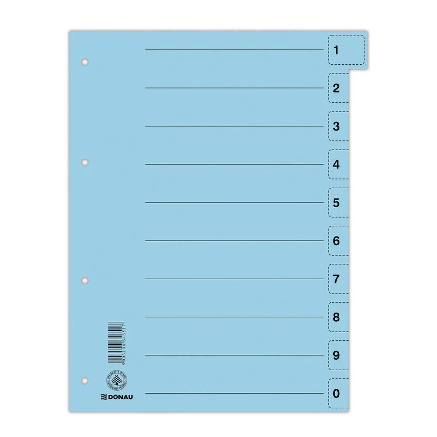 Przekładka Donau Karton A4 235X300mm 0-9 1 Karta Z Perforacją Niebieska