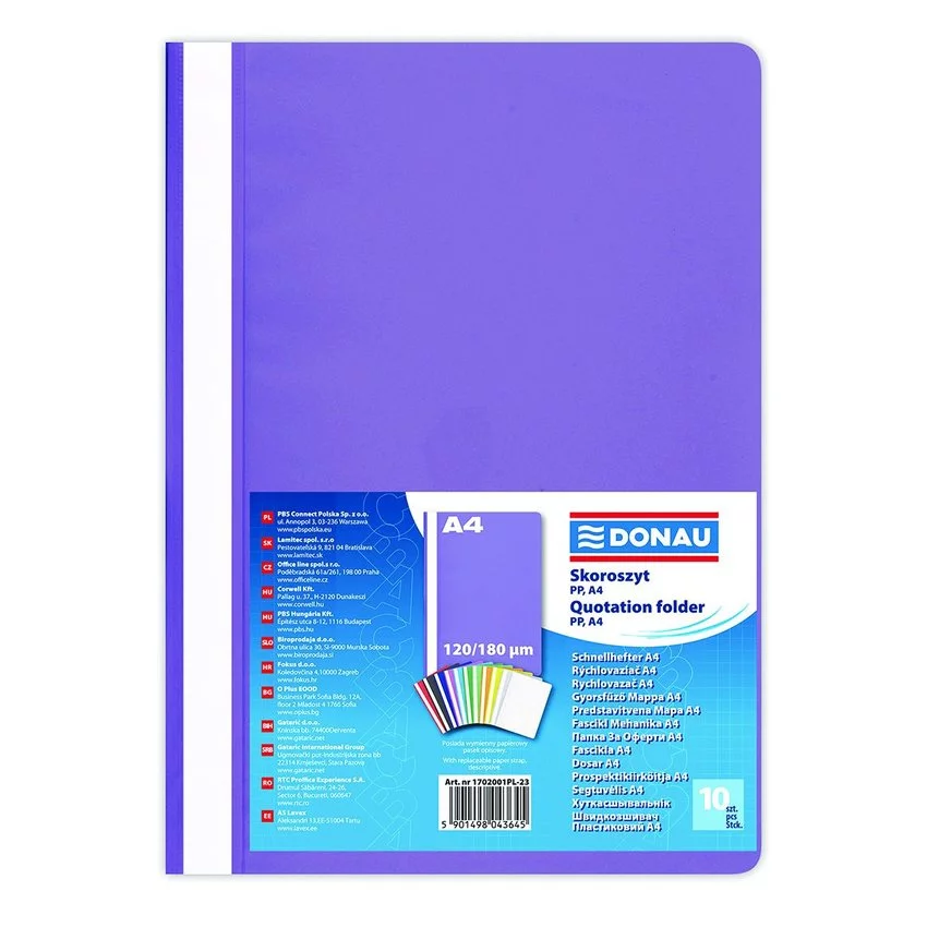 Skoroszyt Donau PP A4 Standard 120/180 mikr. Fioletowy
