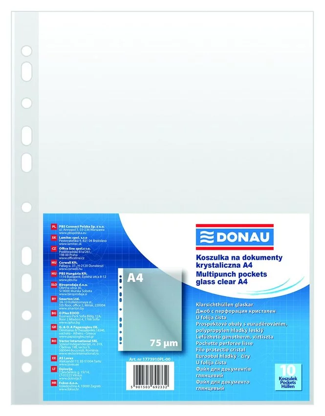 Koszulki Na Dokumenty Donau PP A4 Krystal 75 mikr. 10Szt.