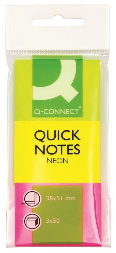 Bloczek Samoprzylepny Q-Connect 38X51mm 3X50 Kart. Neon Mix Kolorów