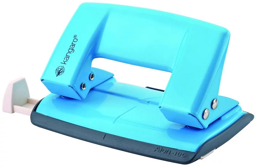 Dziurkacz Kangaro Aion-10G/S Dziurkuje Do 10 Kartek Metalowy W Pudełku PP Turkusowy