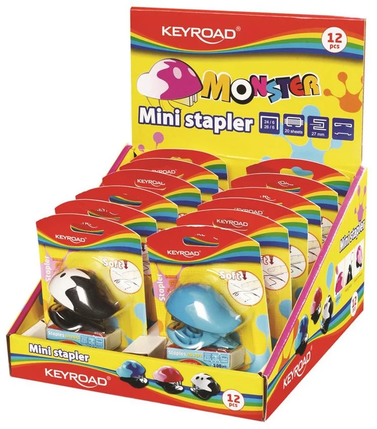 Zszywacz Keyroad Mini+Zszywki Zszywa Do 20 Kartek Pakowane Na Displayu Mix Kolorów