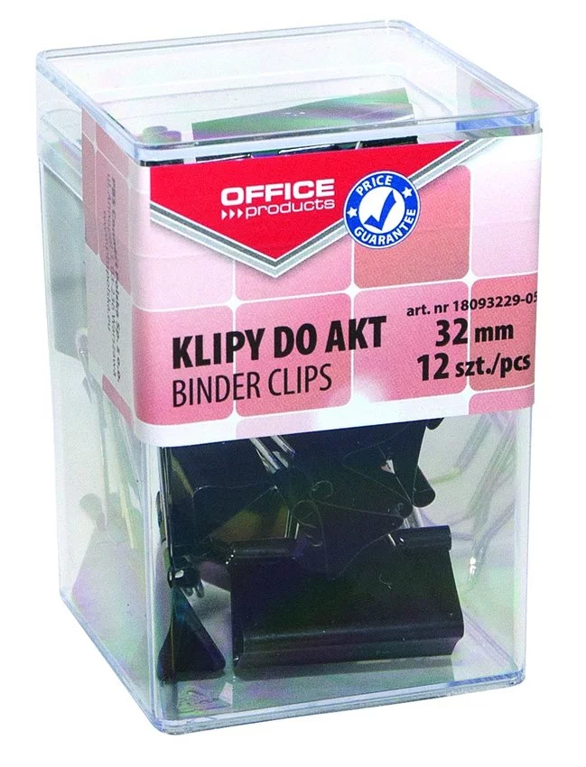 Klipy Do Dokumentów Office Products 32mm 12Szt. W Pudełku Czarne