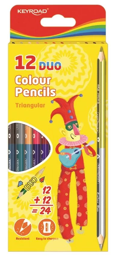 Kredki Ołówkowe Keyroad Trójkątne Dwustronne 12Szt. Mix Kolorów