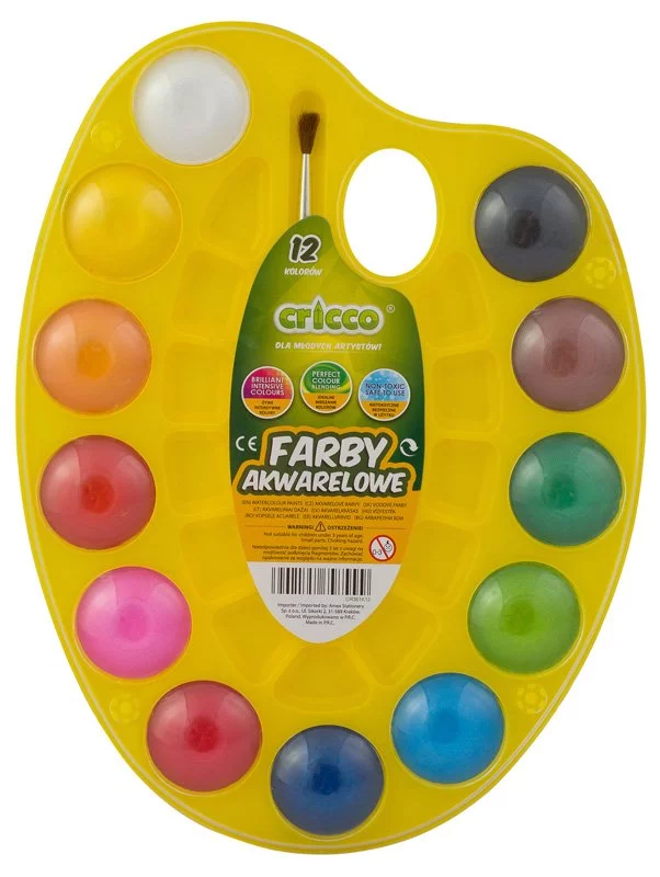 Farby Akwarelowe Cricco 12 Kol.Paletka