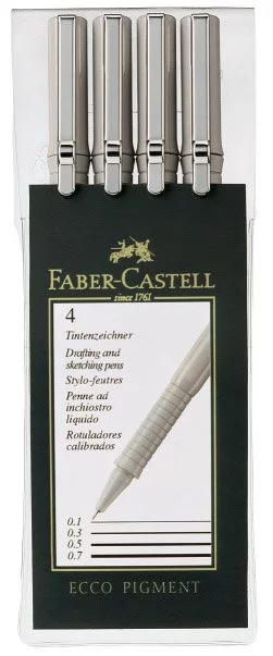 Cienkopisy Ecco Pigment 4 szt. Etui (0,1 : 0,3 : 0,5 : 0,7mm ) Czarne Faber-Castell