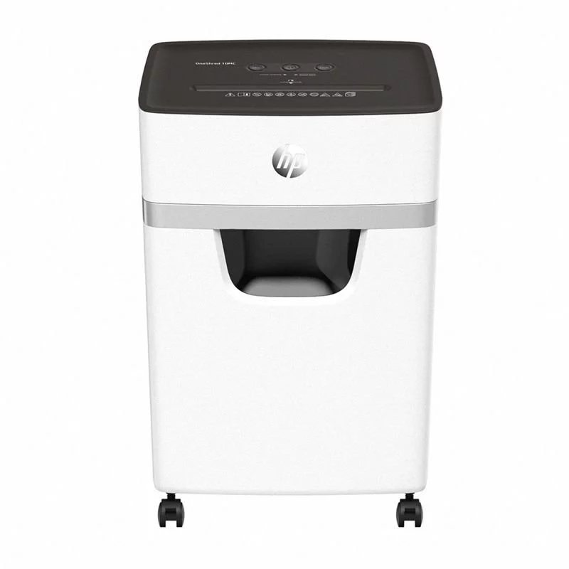 Niszczarka HP OneShred 10MC w eleganckim jasnoszarym kolorze z ciemnymi elementami to idealne rozwiązanie do małego biura lub użytku osobistego. Z łatwością niszczy karty kredytowe, zszywki, spinacze oraz papier. Posiada kółka co ułatwia sprzątanie i transportowanie urządzenia między pomieszczeniami.