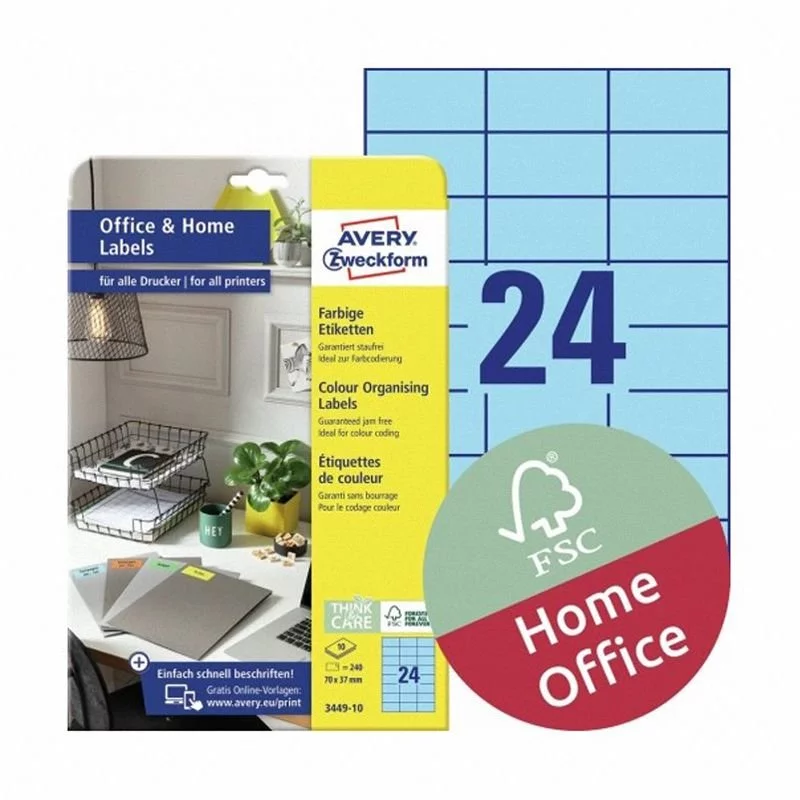 Etykiety Samoprzylepne Avery Office&Home 70x37 24/A4 A'10 Niebieskie No.3449-10
