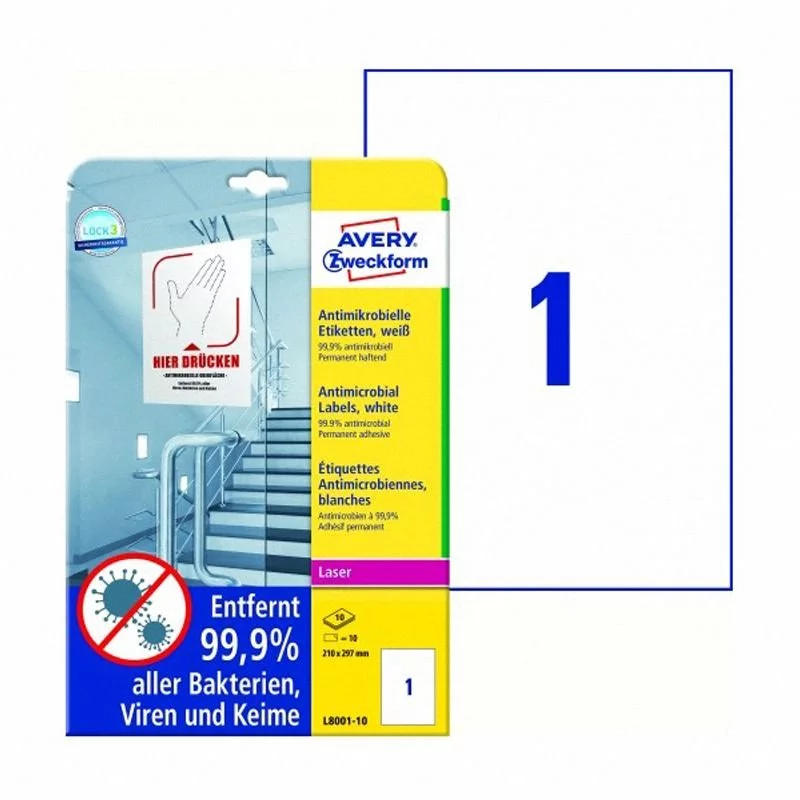 Folia Samoprzylepna z Powierzchnią Antydrobnoustrojową Avery 210x297 1/A4 A'10 Biała No.L8001-10