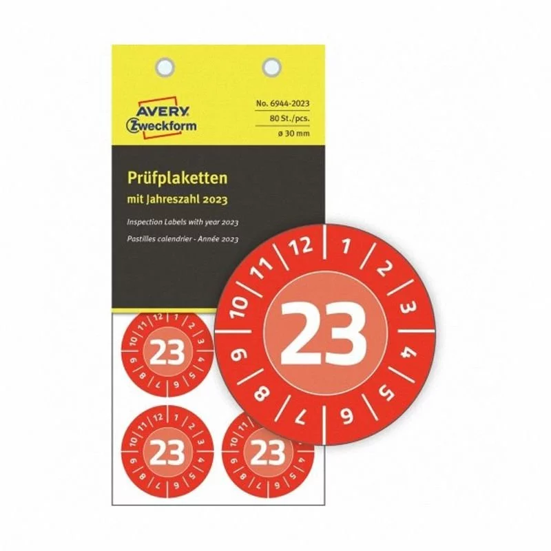 Etykiety Inspekcyjne Vinylowe 2023 Avery śr.30 A'80 Czerwone No.6944-2023