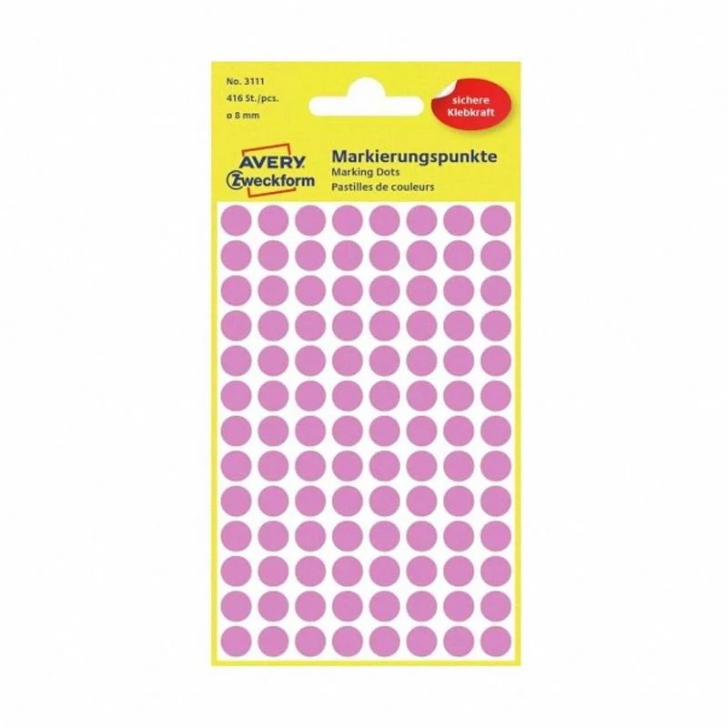 Samoprzylepne kółka do zaznaczania Avery Zweckform 3111 w modnym różowym kolorze są idealne do oznaczania, klasyfikowania porządkowania, planowania i tworzenia harmonogramów.
