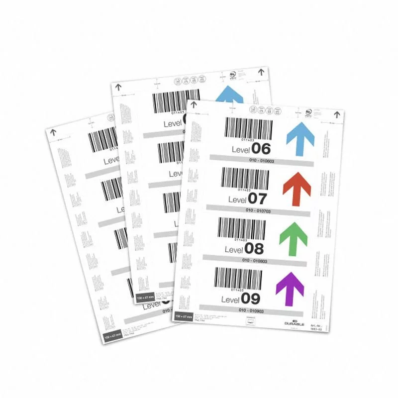 Oznaczenia magazynowe przestrzeni paletowych, produkcyjnych lub magazynowych gwarantuje szybką lokalizację. DURABLE posiada w swojej ofercie zarówno kieszenie magazynowe jak wkłady do tych kieszeni. Mikroperforowane wkłady do kieszeni magazynowych w formacie A4.